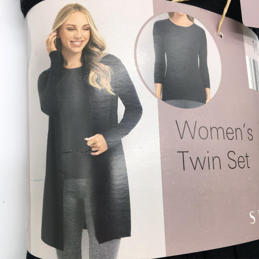 Serra Women Twin Set of Three-Quarter Sleeve Knit Top Cardigan Black Size10 New