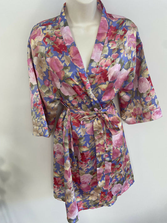 Vintage 80’s Etam UK Knee Length Silky Dressing Gown Robe Size 8 10 12 14 Floral