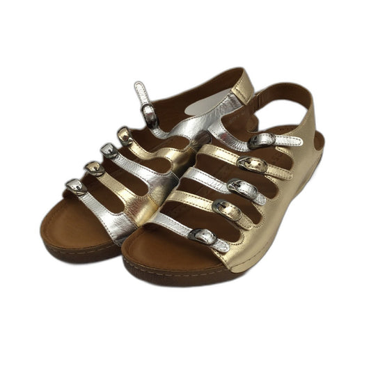 Adesso Astrid Metallic Gold Silver Leather Buckle Sandal Slides Ladies EU 42 NEW