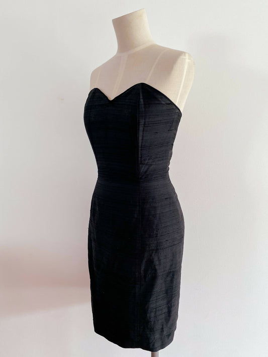 Adele Ryan Size 10 Black Slubbed Silk Mini Dress