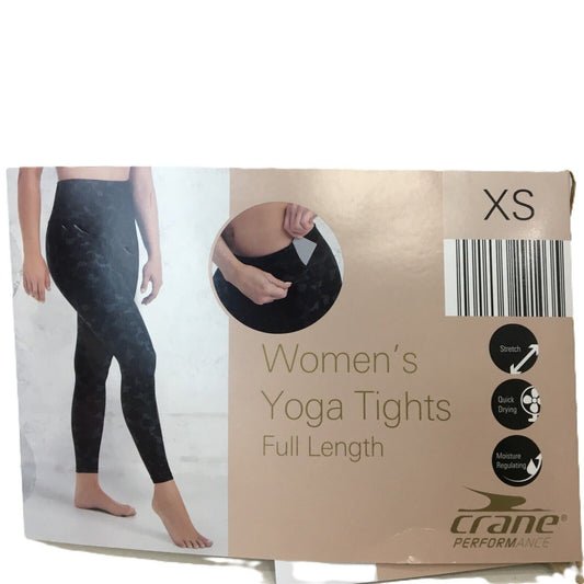 Crane Performance Women Black Yoga Tights with Pocket Full Length Size XS NEW