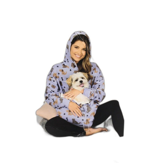 Crane Plush Fleece Pet Carrying Hoodie Blue Cat & Dog Pattern Unisex Sz S NEW