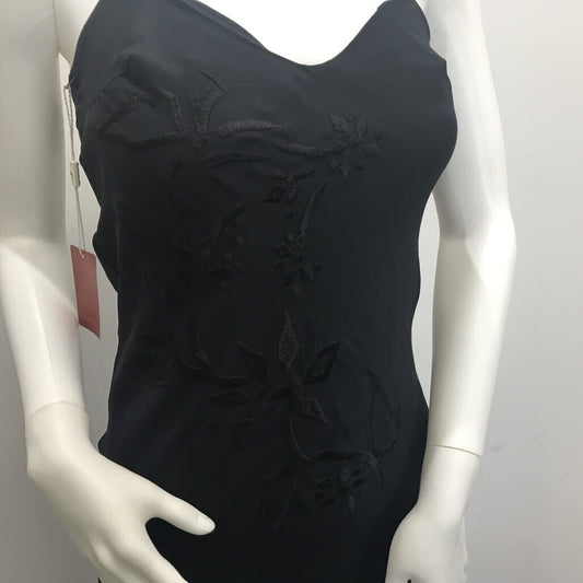Faber Italian-made 100% Silk Embroidered Strappy Black Dress Ladies Size 6-8 NEW