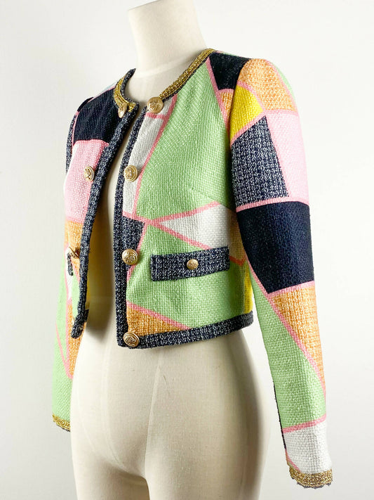Size S Bouclé Patterned Cropped Blazer