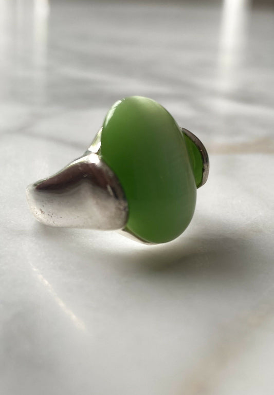 Silver-Tone Green Ring
