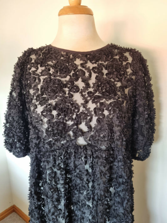 Bariano Black Size 6 Black Tulle-Trimmed Gown