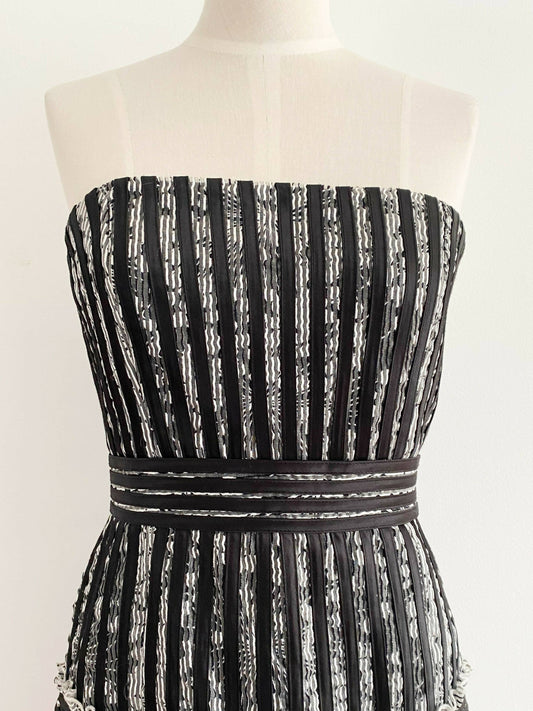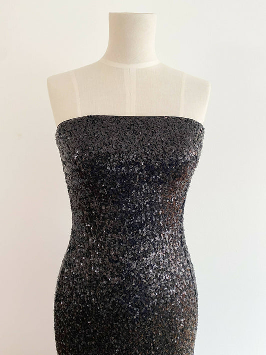 BNWT Bariano Size 6 Black Sequinned Strapless Gown