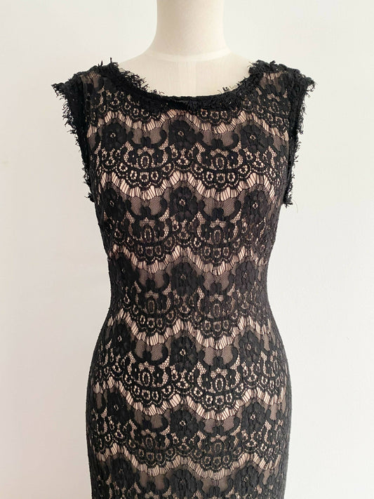 BCBG Max Azria Size 12 Monochrome Tulle-Trimmed Dress