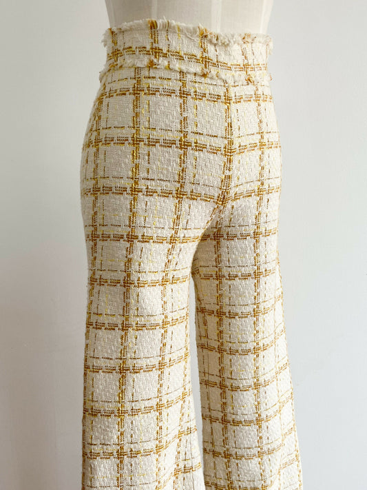 Zara Size XS Cotton-blend Cream Tweed Pants