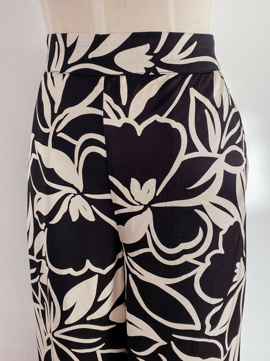 Floral Sketch Pattern Wide Leg Trousers White Ladies Sz 10 *De-Tag NEW