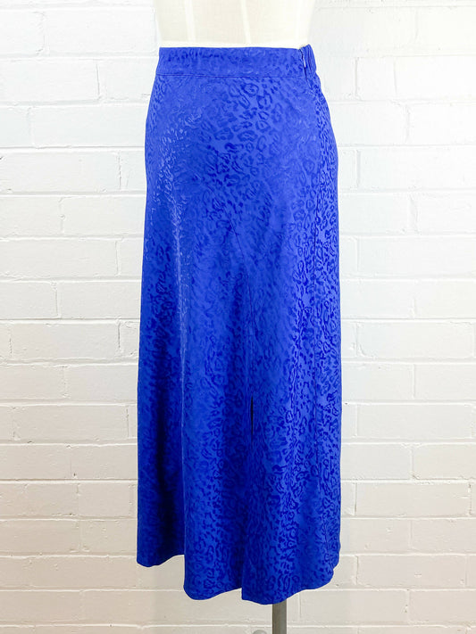 Jeanswest Size 8 Cobalt-Blue Jaquard Midi Skirt
