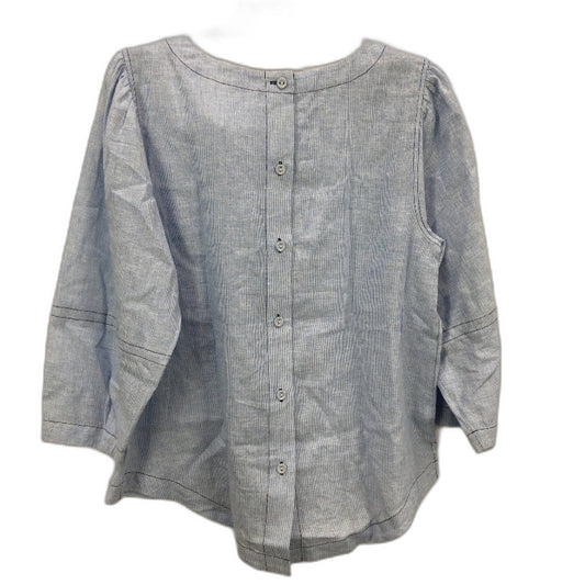 Regatta Button Up Back Woven Linen Blend Blue White Blouse Ladies Size 10 NEW