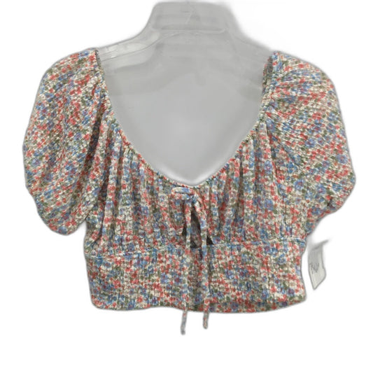 American Eagle Bay Floral Short Sleeve Tie Front Crop Top Ladies Size Medium NEW