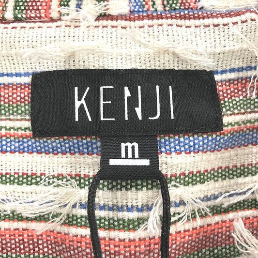 Kenji Natural Multicoloured Stripe Textured Short Sleeve Shirt Mens Sz M NEW