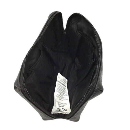 Skylite Black Genuine Real Leather Pouch Travel Makeup Bag Zip Closure NEW
