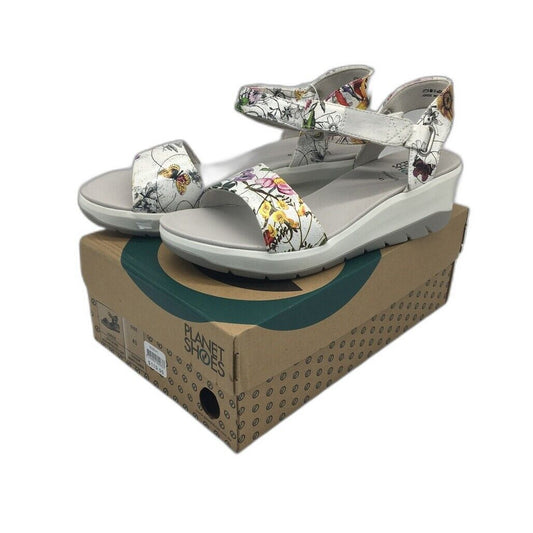 Planet Shoes Jordie Floral & Silver Wedge Leather Sandals Ladies Size 42 NEW
