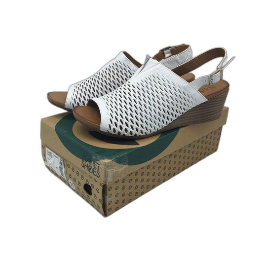 Planet Shoes Vana White Leather Wedge Sandals Ladies Size 42 /AUS 11 NEW