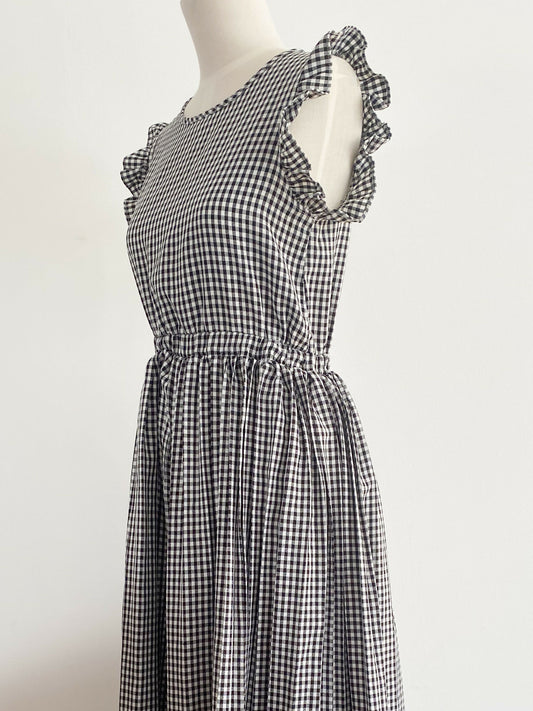 Pret-A-Porter Size 8 Monochrome Ruffled Polka-Dot Cotton Midi Dress
