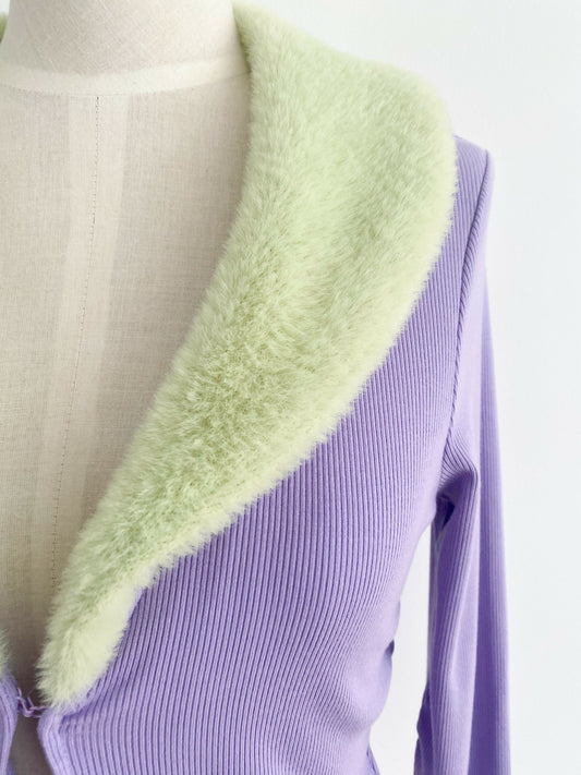 Finesse Size Small Faux Fur-Trimmed Purple Knit Cardigan