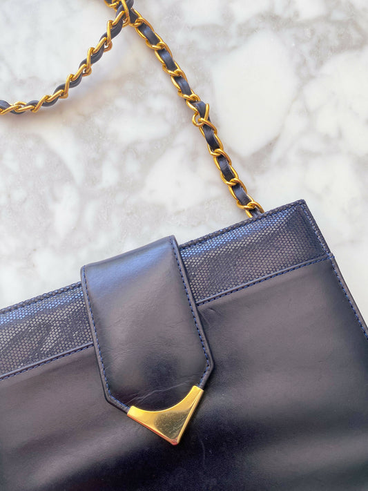 Sold outFootrest Navy Gold-Tone Trimmed Bag