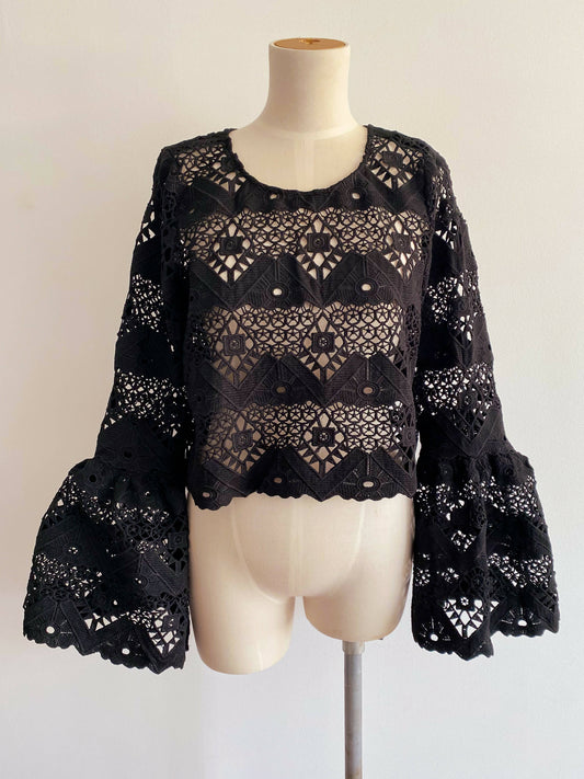 Seed Size 12 Black Lace Bell-Sleeve Top