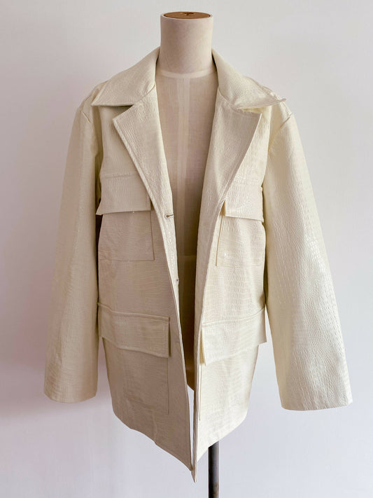 Lioness Extra Small Off-White Croc-Effect Faux Leather Blazer