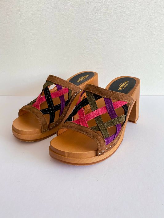 Swedish Hasbeens Size 38 Multicolour Suede Clogs