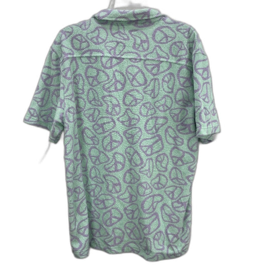 Kenji Mint Green Purple Peace Sign Terry Towling Unique Shirt Mens Sz M NEW