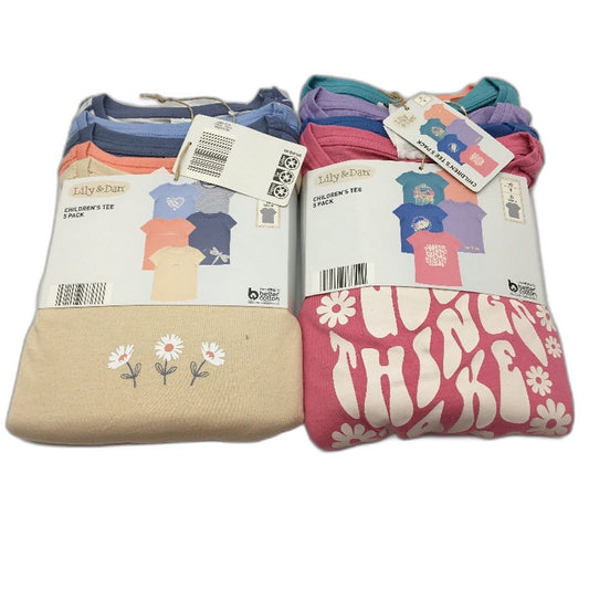 Lily & Dan 2 x 5Pks Classic Fit 100% Cotton Mutlicoloured Girls Tees Size 5 NEW