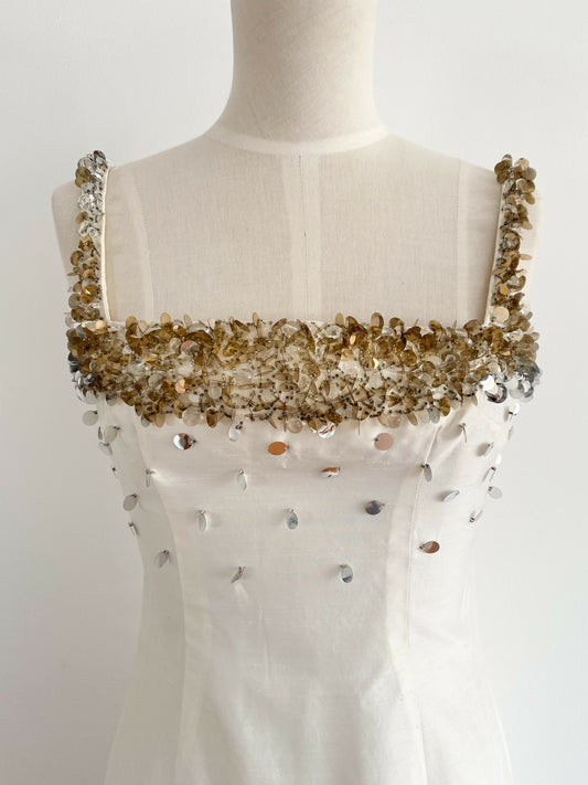Size 10 Sequin-Embellished Off-White Dupioni Silk Gown