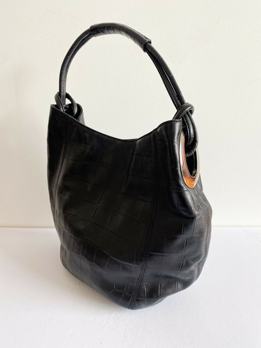 Sold outOroton Croc-Effect Black Leather Bag