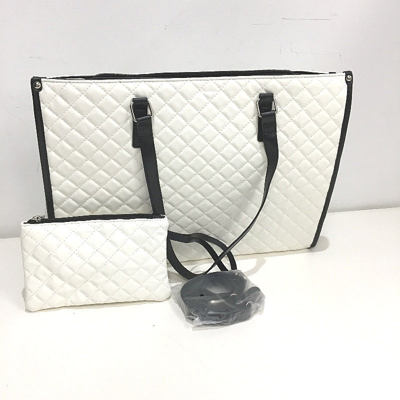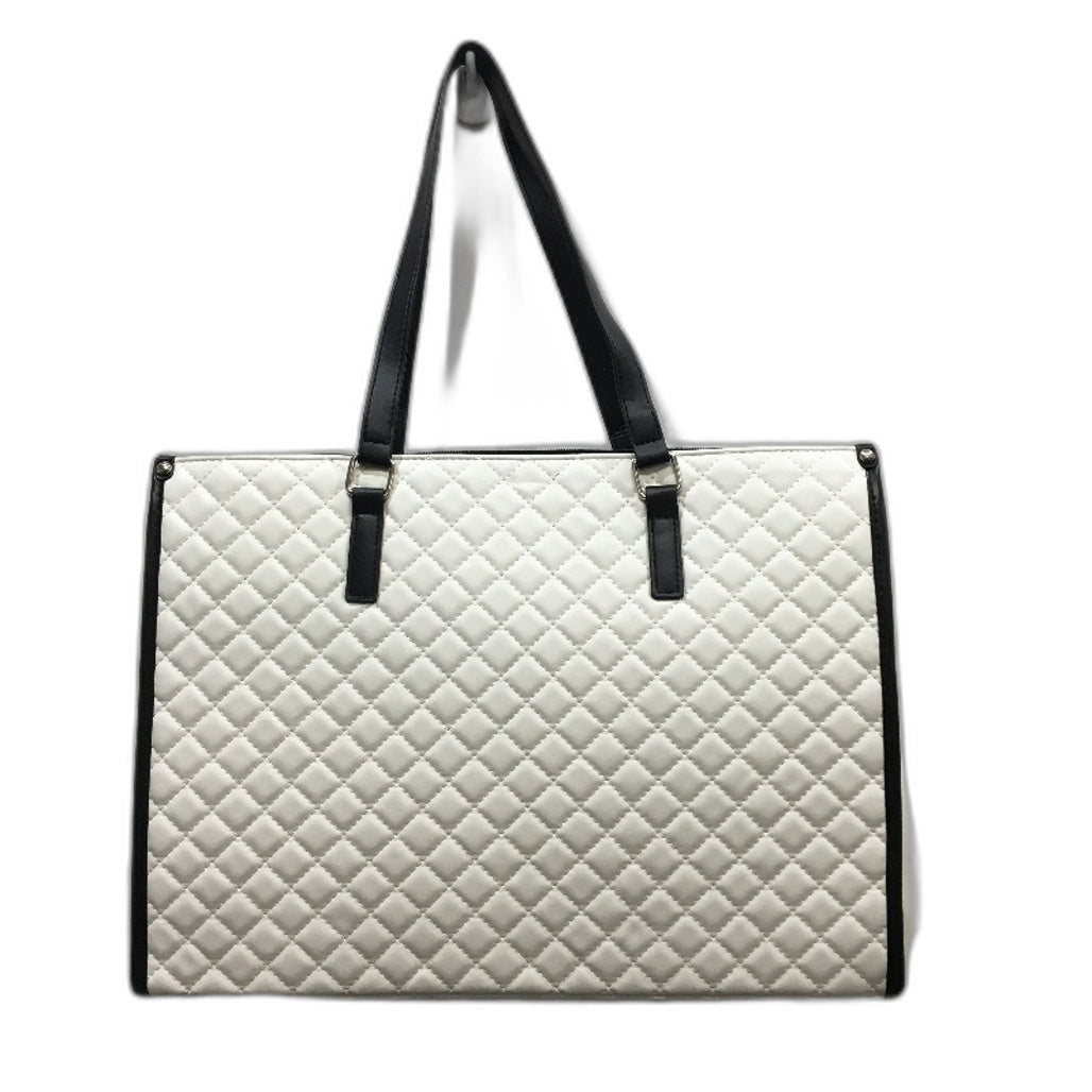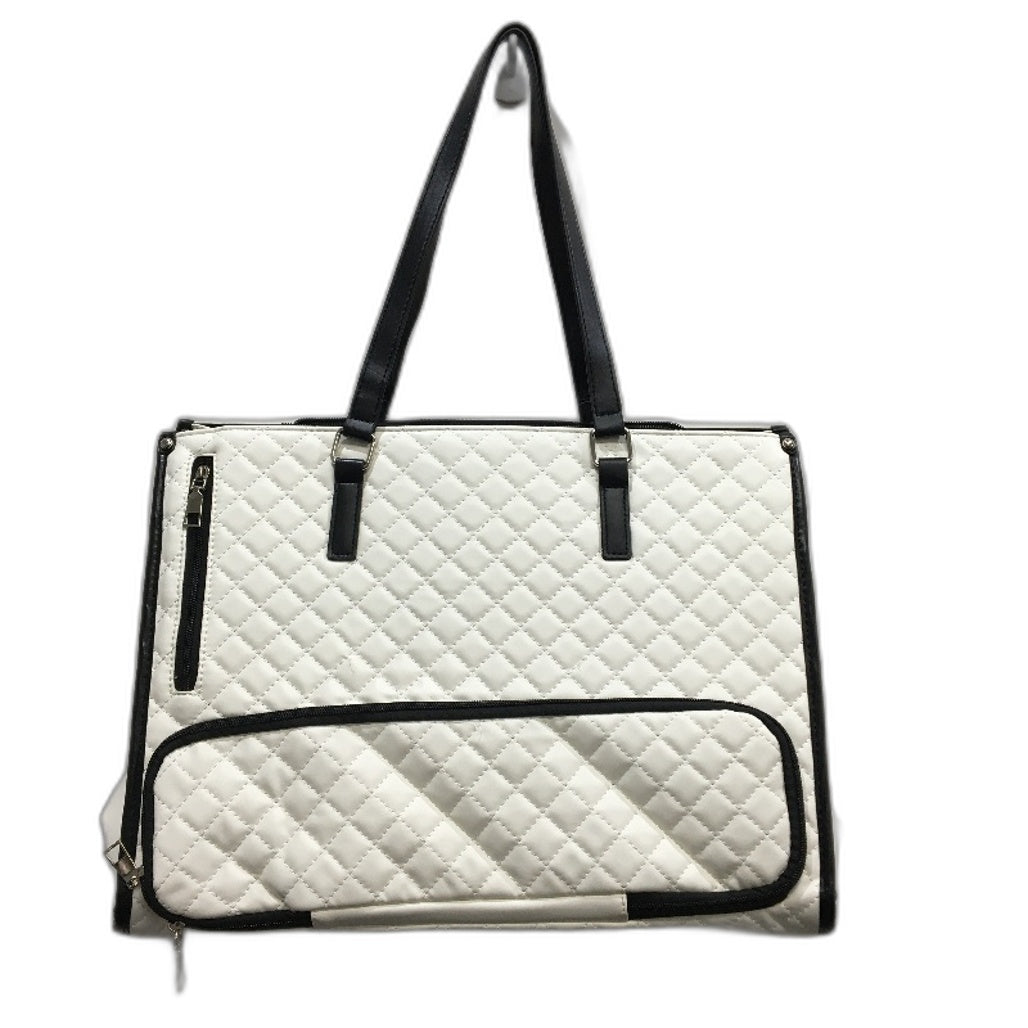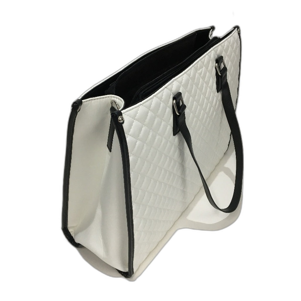 15.6 Inch Laptop Bag White Black Accent Faux Leather Quilted Look Lunch Tote NEW