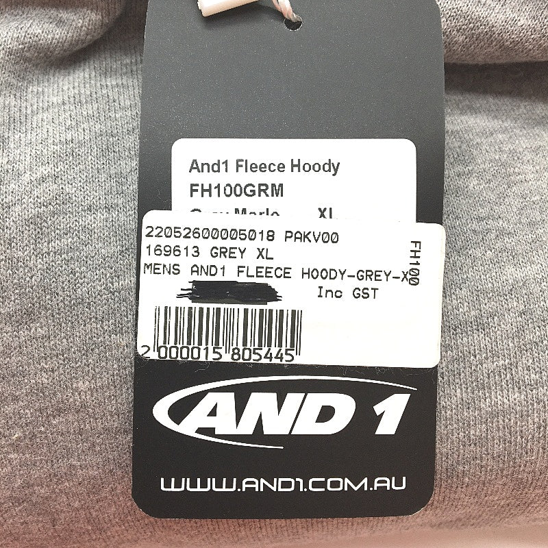 AND1 Grey V2 Soft Fleece Pullover Hooded Sweater Jumper Unisex Size XL NEW