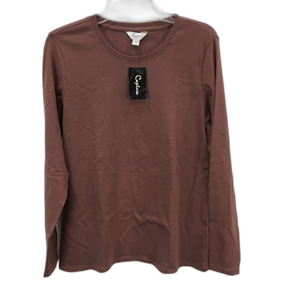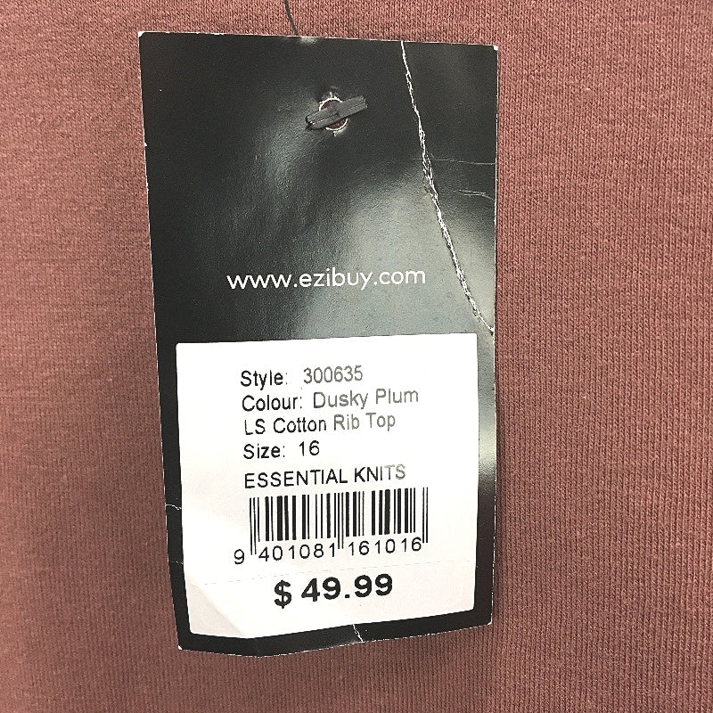 Capture Round Neck Long Sleeve Cotton Dusky Plum Rib Top Ladies Size 16 NEW