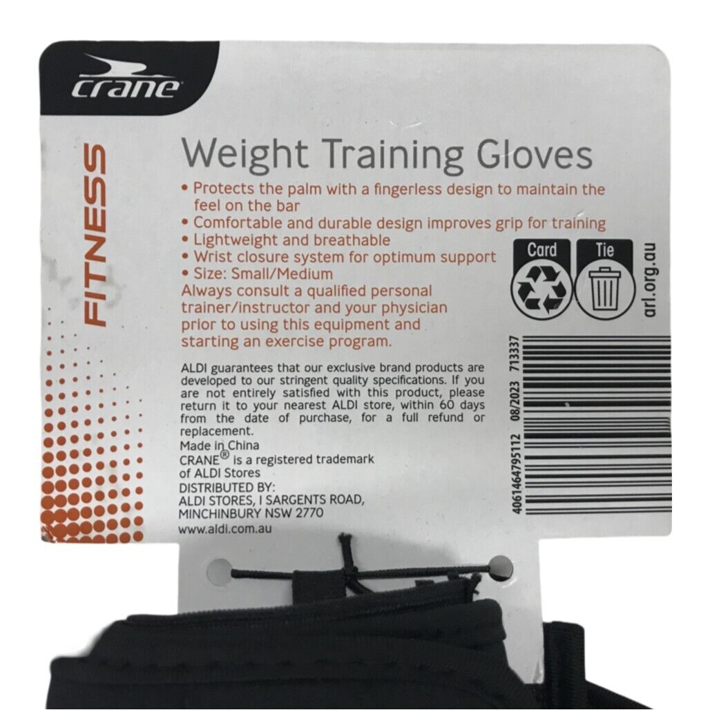Crane Fitness Fingerless Padded Weight Training Gloves Black Unisex Sz S/M NEW