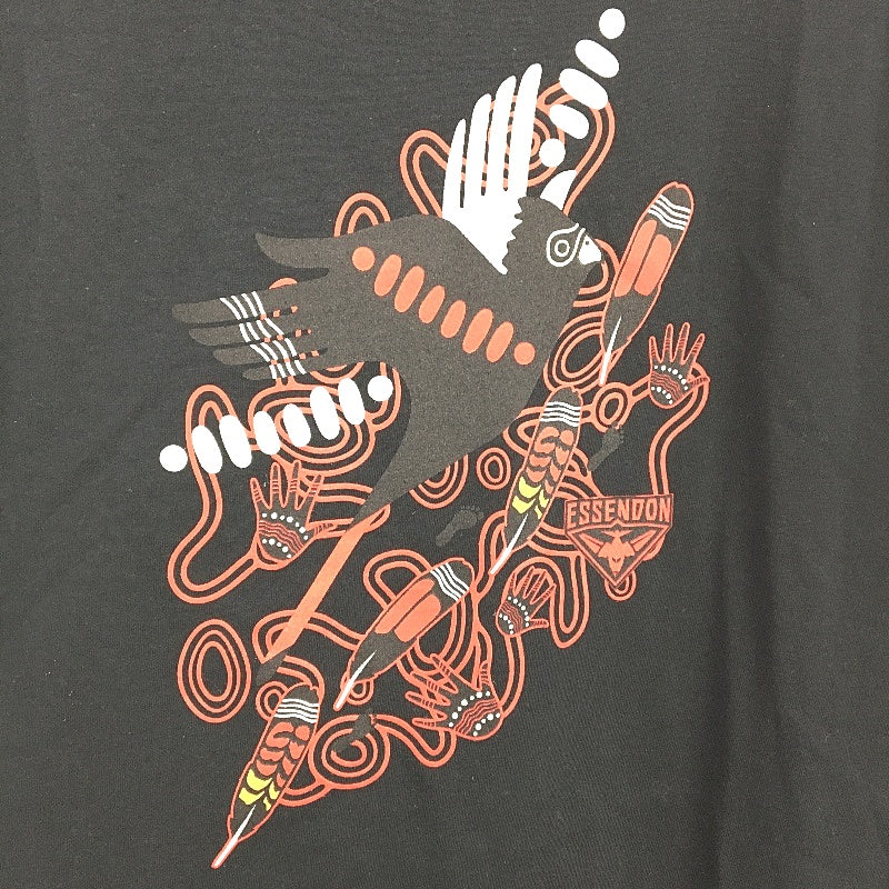 Essondon Bombers AFL Indiginous Print 100% Cotton Black T-Shirt Mens Size M NEW