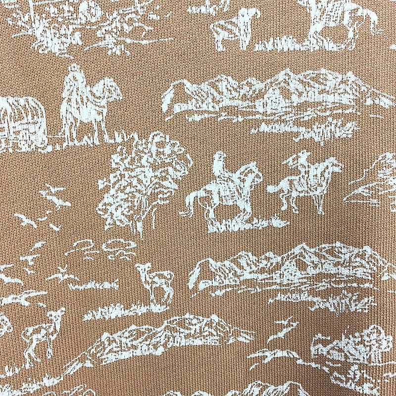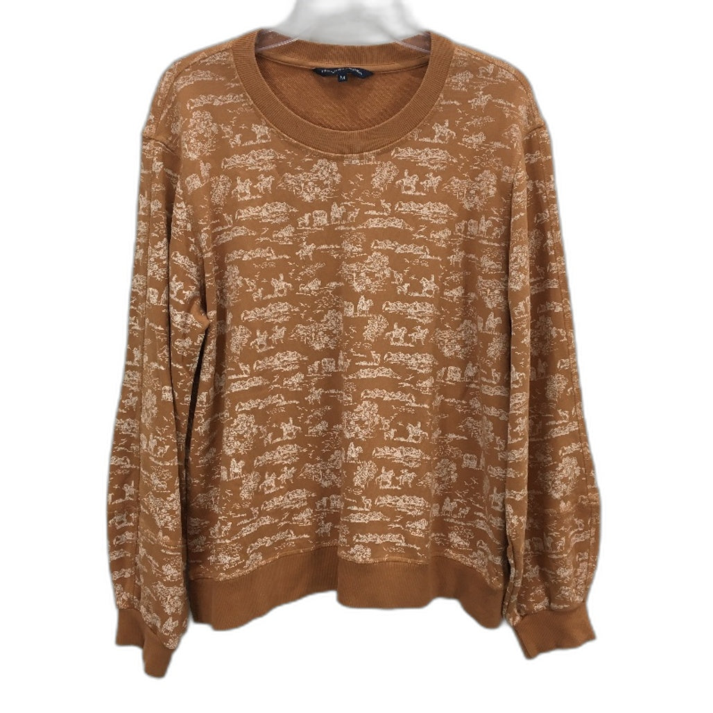 French Connection Cowboy Western Pattern Clay Brown Sweatshirt Ladies Sz Medium