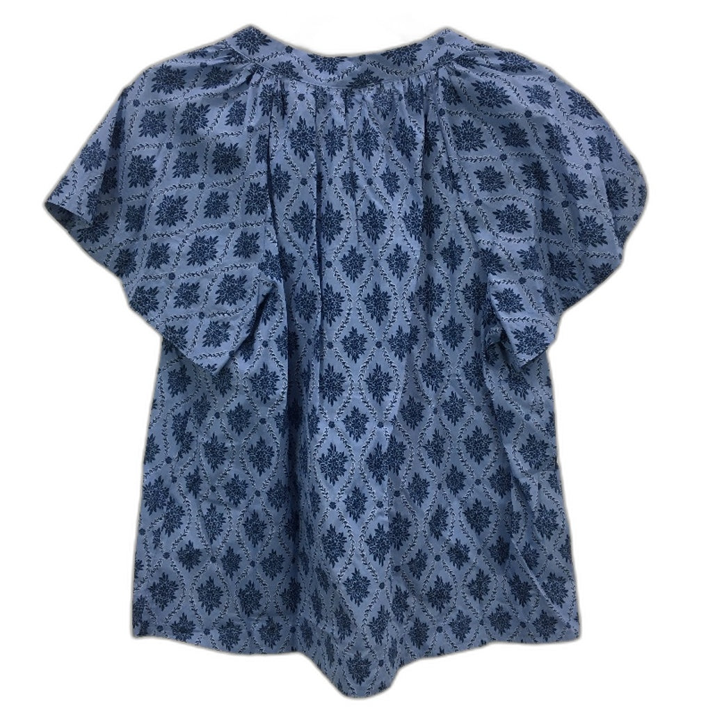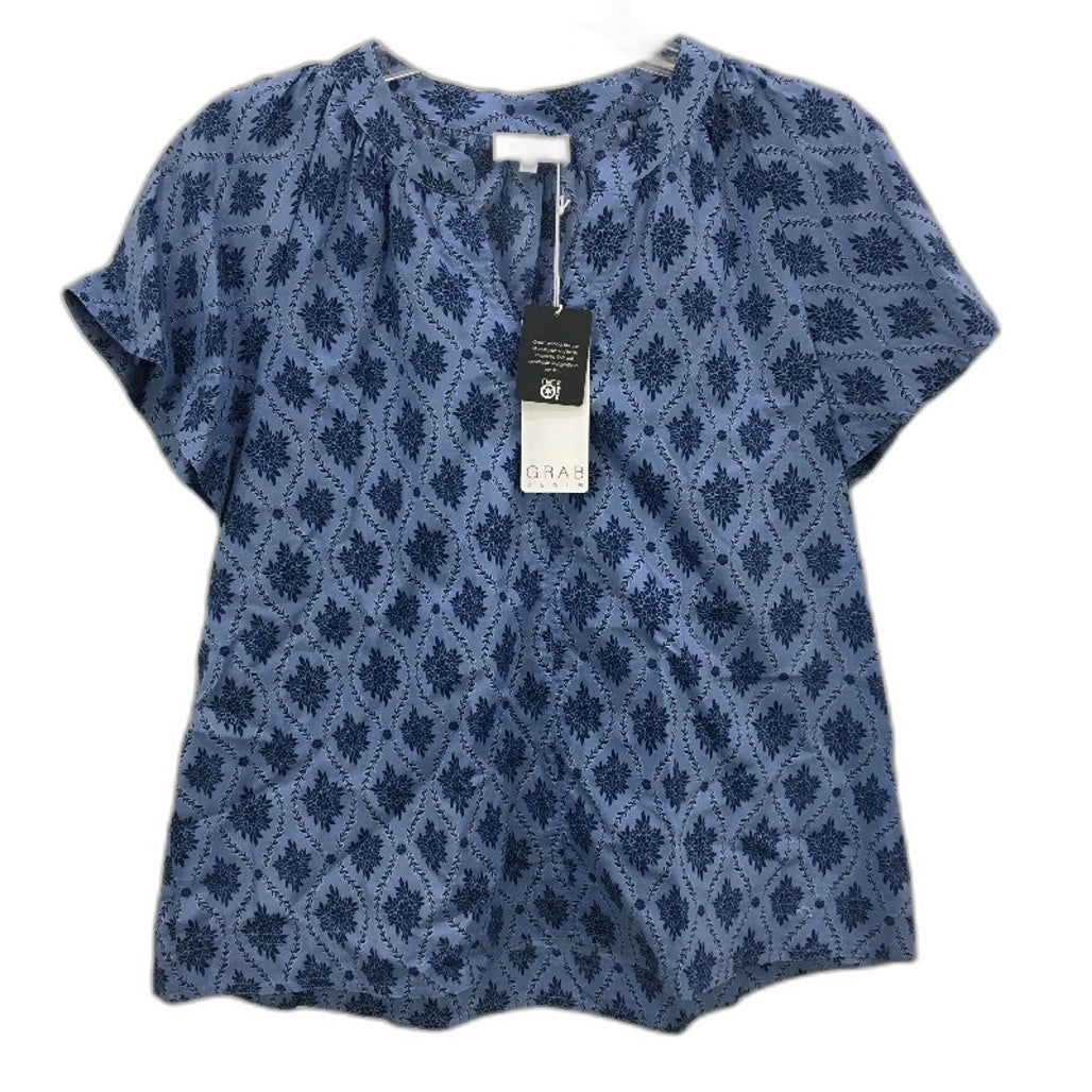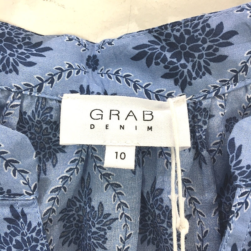 Grab Denim Floral V Neck Cotton Blue Shortsleeve Tunic Top Ladies Size 10 NEW