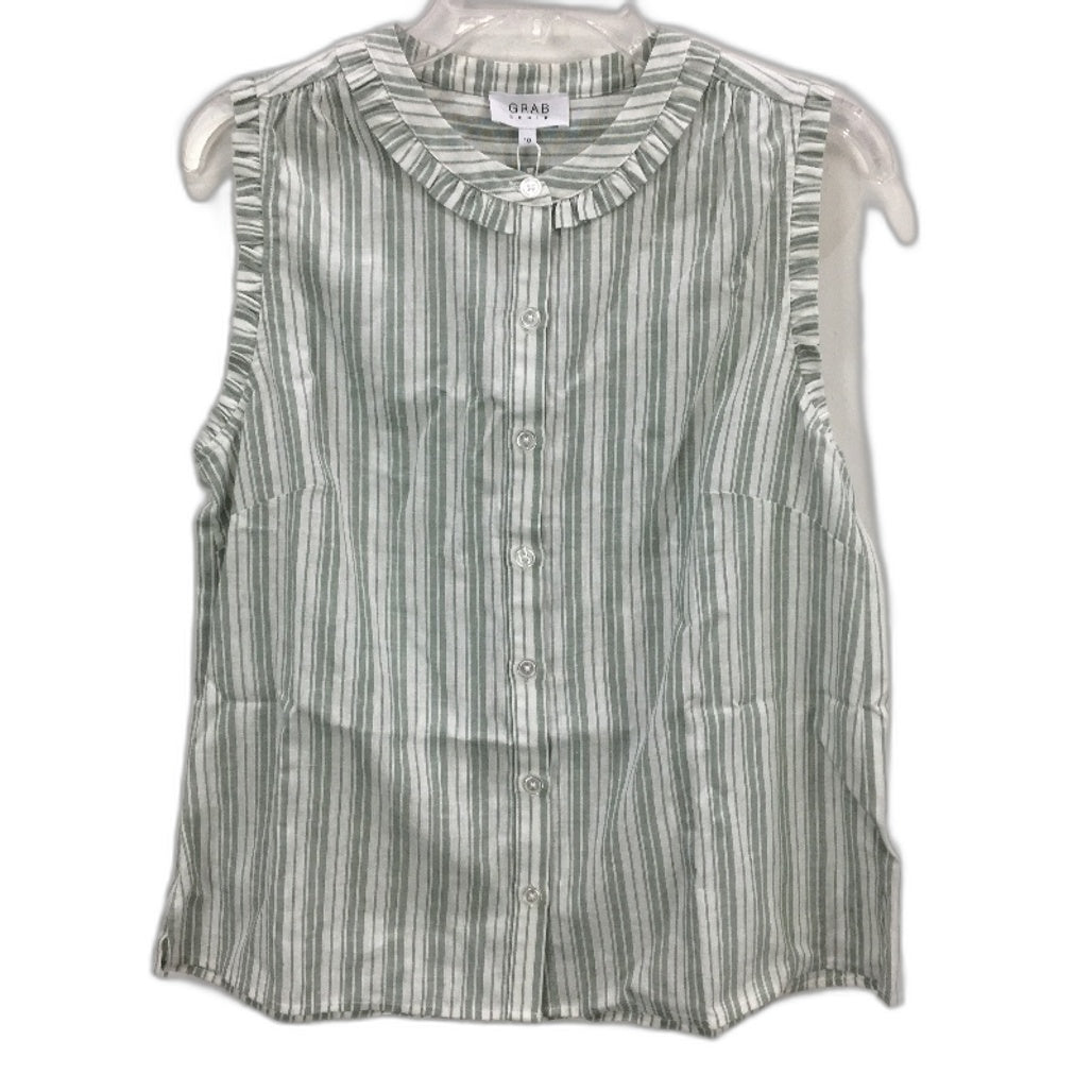 Grab Denim Ruffle Detail Green White Stripe Sleeveless Top Ladies Size 10 NEW