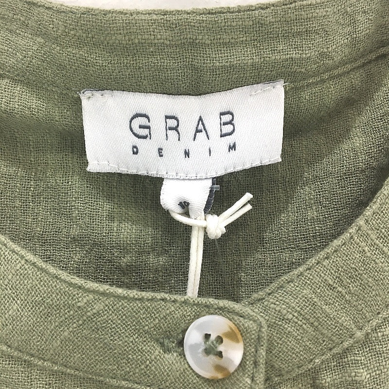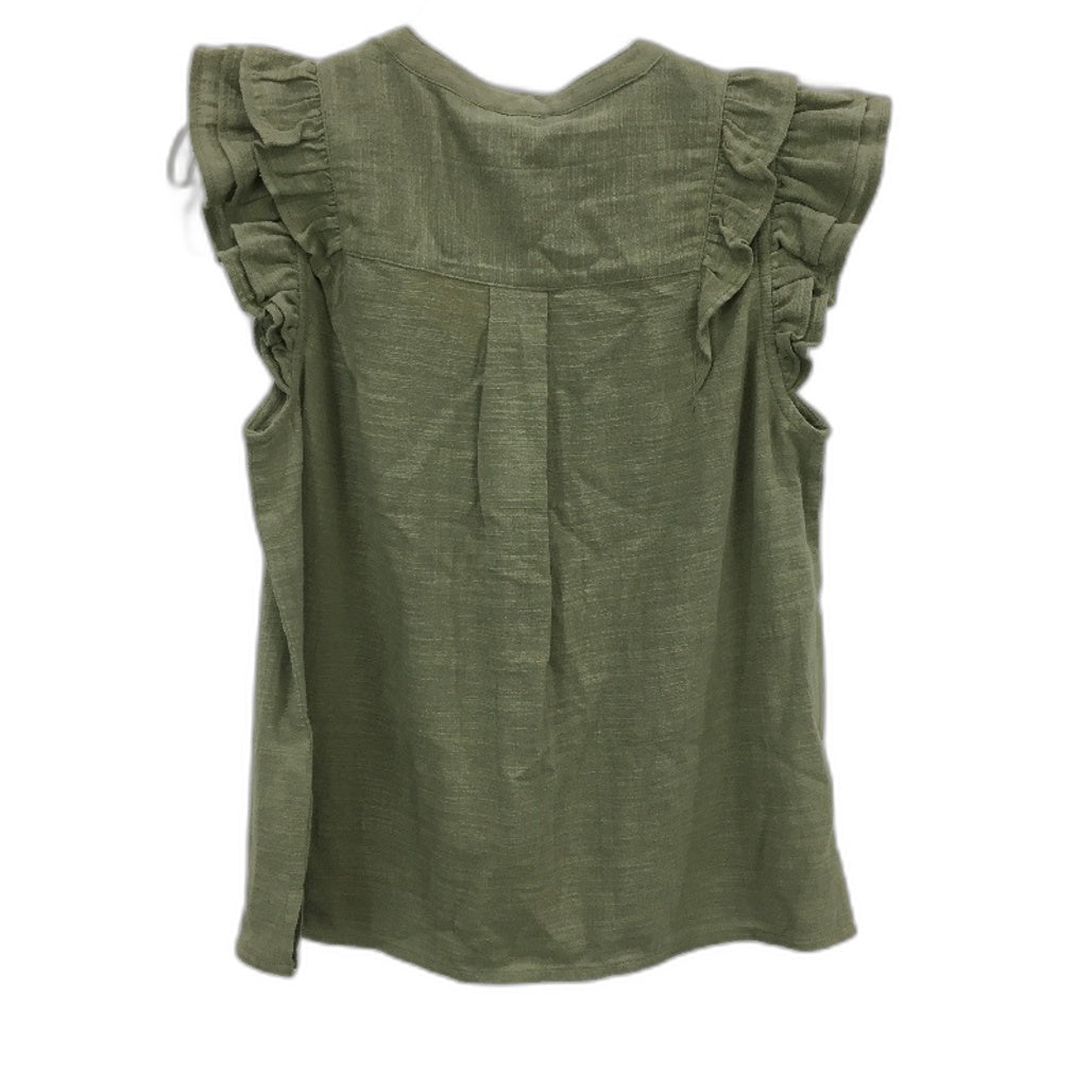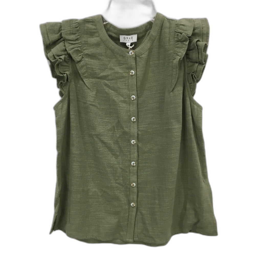 Grab Denim Ruffle Sleeve Sage Green Cotton Button Up Top Ladies Size 10 NEW