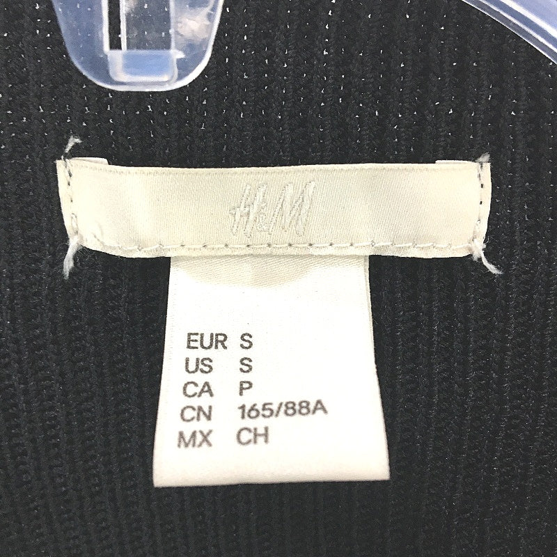 H&M Stretch Ribbed Knitted Black Jewel Neck Top Ladies Size Small