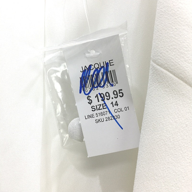 Jacqui E Milk White Button Detail Crepe Open Blazer Ladies Size 14 NEW