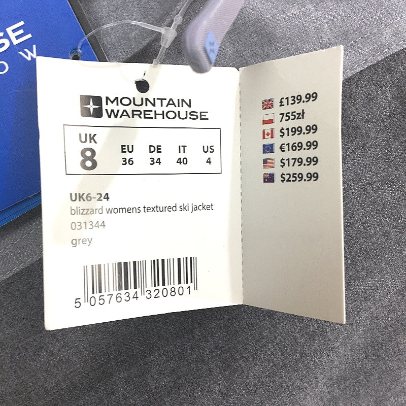 Mountain Warehouse Blizzard Grey Textured Hooded Ski Jacket Ladies Size 8 NEW