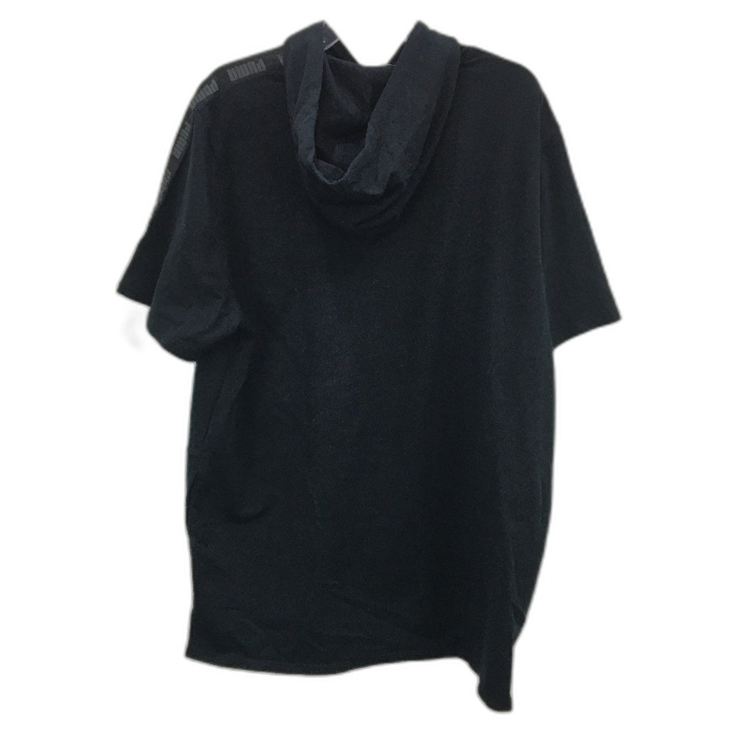 Puma Logo Graphic Print Short Sleeve Black Hooded Training Top Mens Size XL