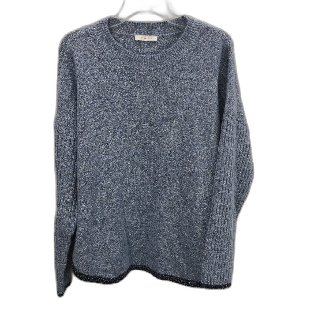 Regatta Blue Scallop Round Neck Ribbed Sleeve Knit Top Ladies Size 10 NEW
